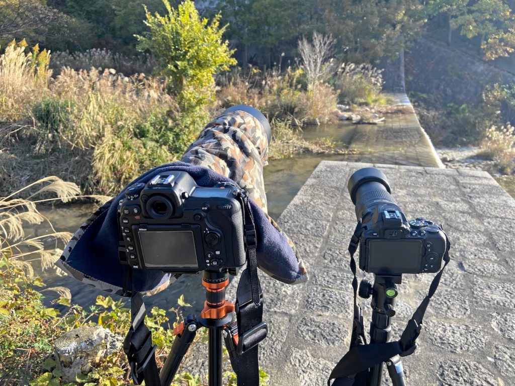 一脚や手持ちの場合もありますが、場所を決めて待っていたり、カワセミなどの飛び待ちで長時間待つ場合は手持ちは無理です。また動画には絶対三脚が必要です。ですので、安定性と軽さのバランスの良いところで選んでいます。