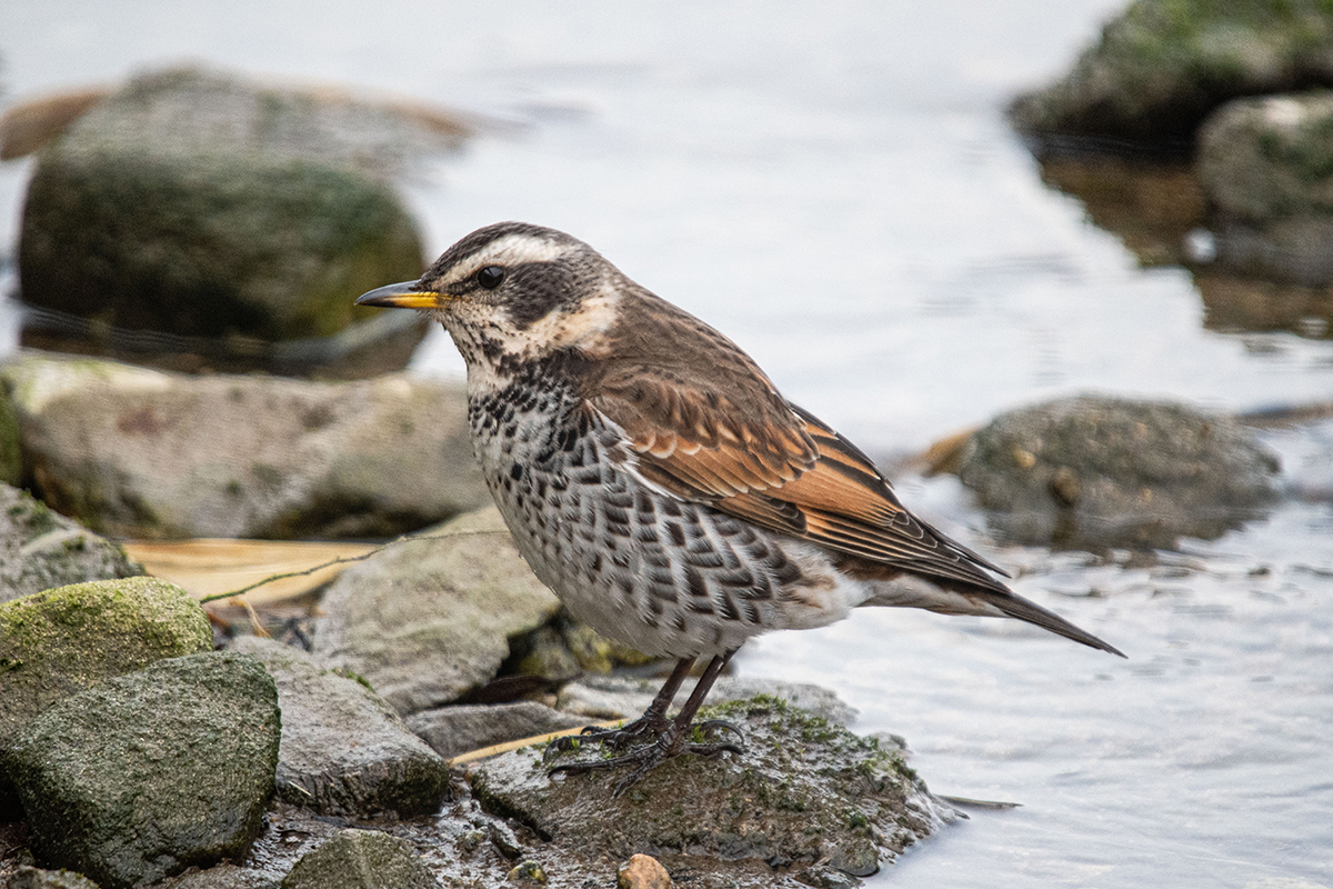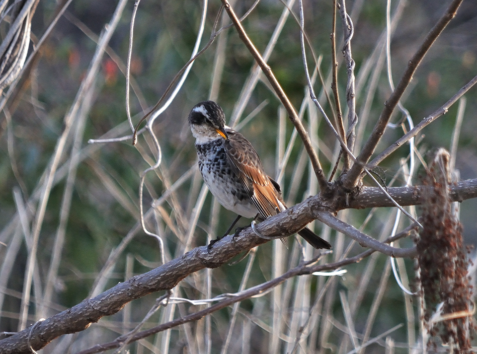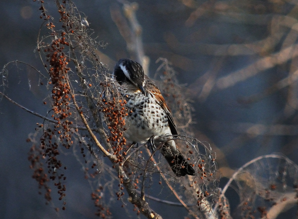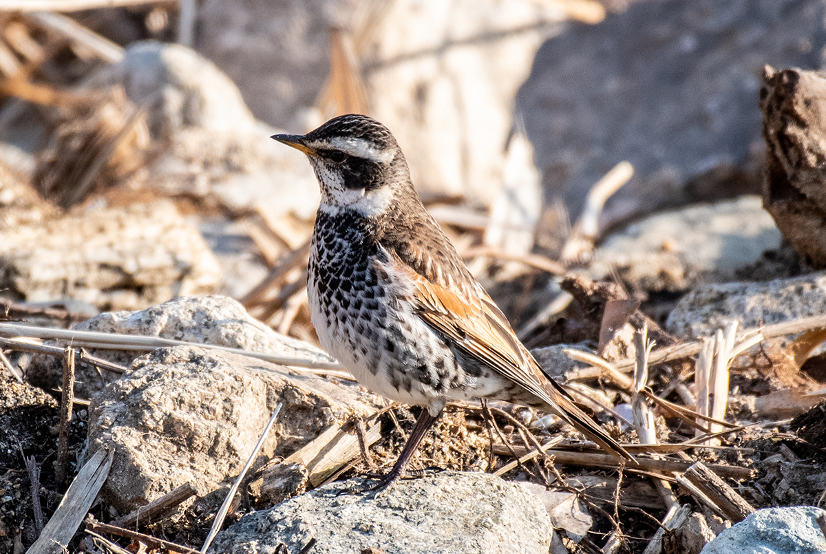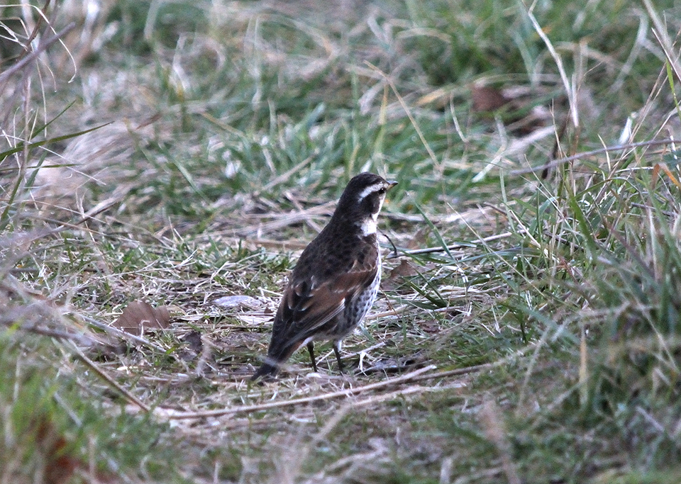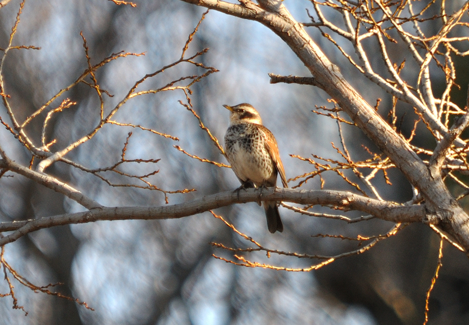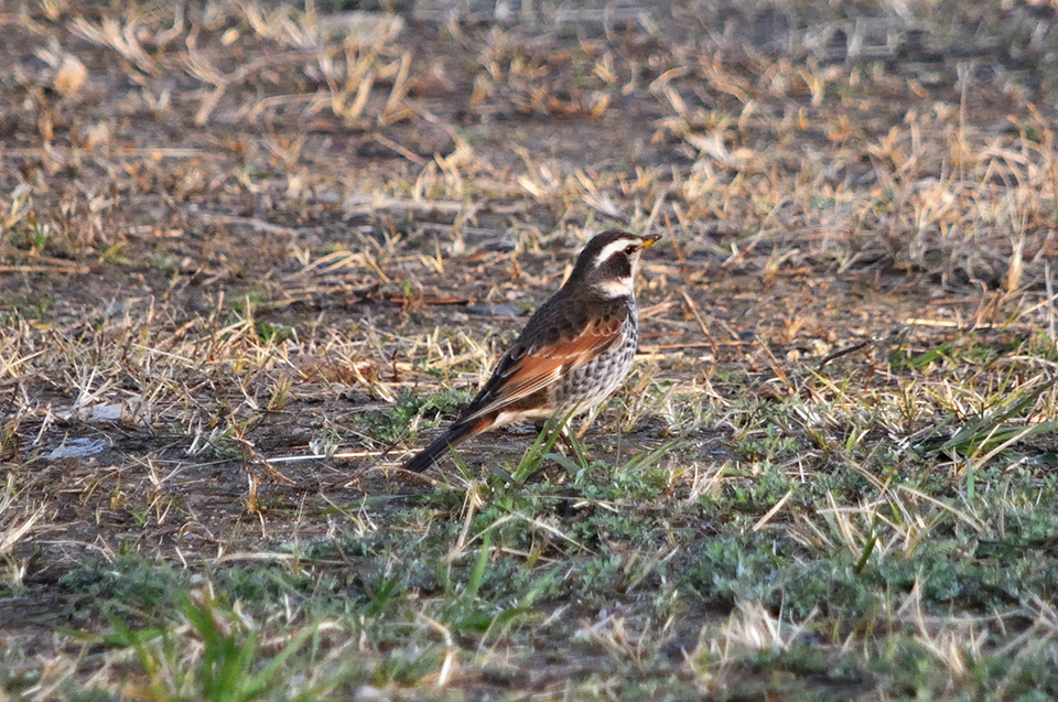 冬になるとシベリアから飛来するツグミはシックで美しい。地面をちょんちょんつついて餌を探す様子が面白いです。結構近づいても逃げません。同じ個体なのかどうか分かりませんがいつも同じ場所で見ることができます。