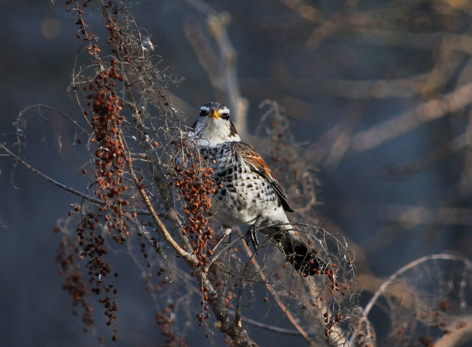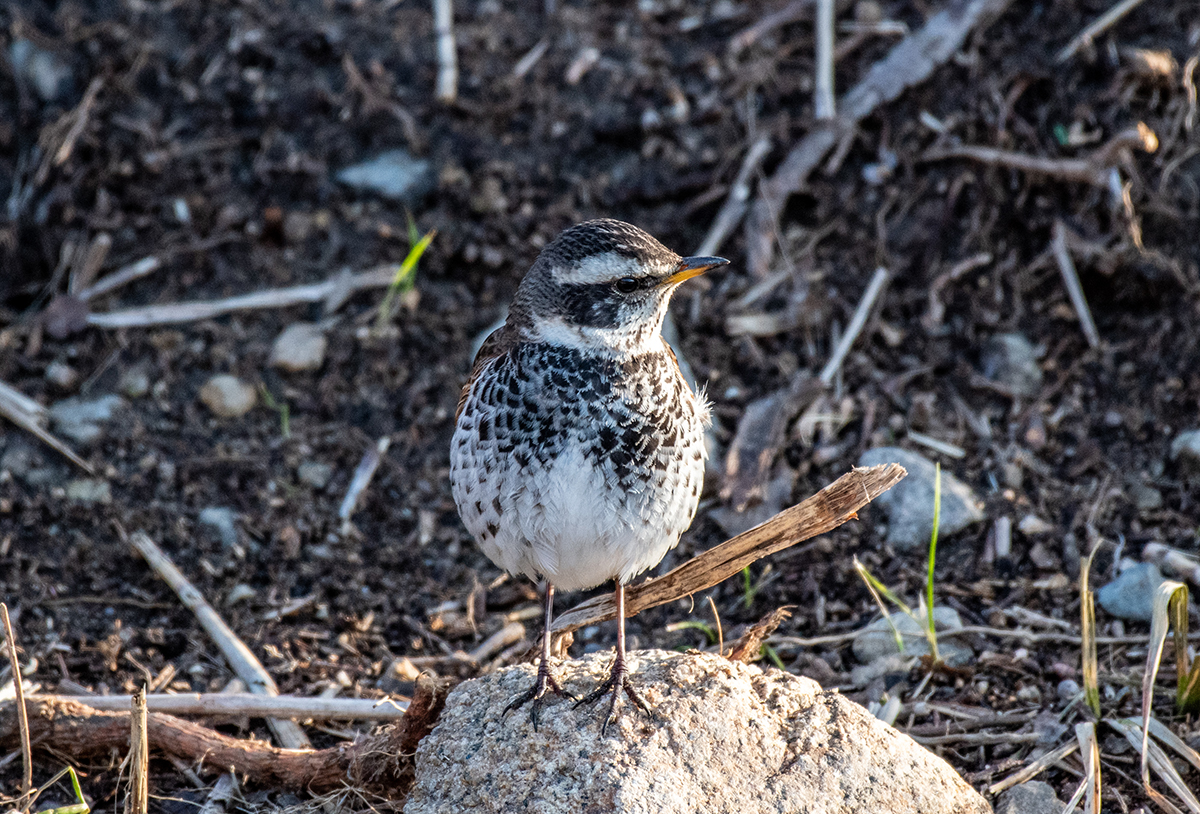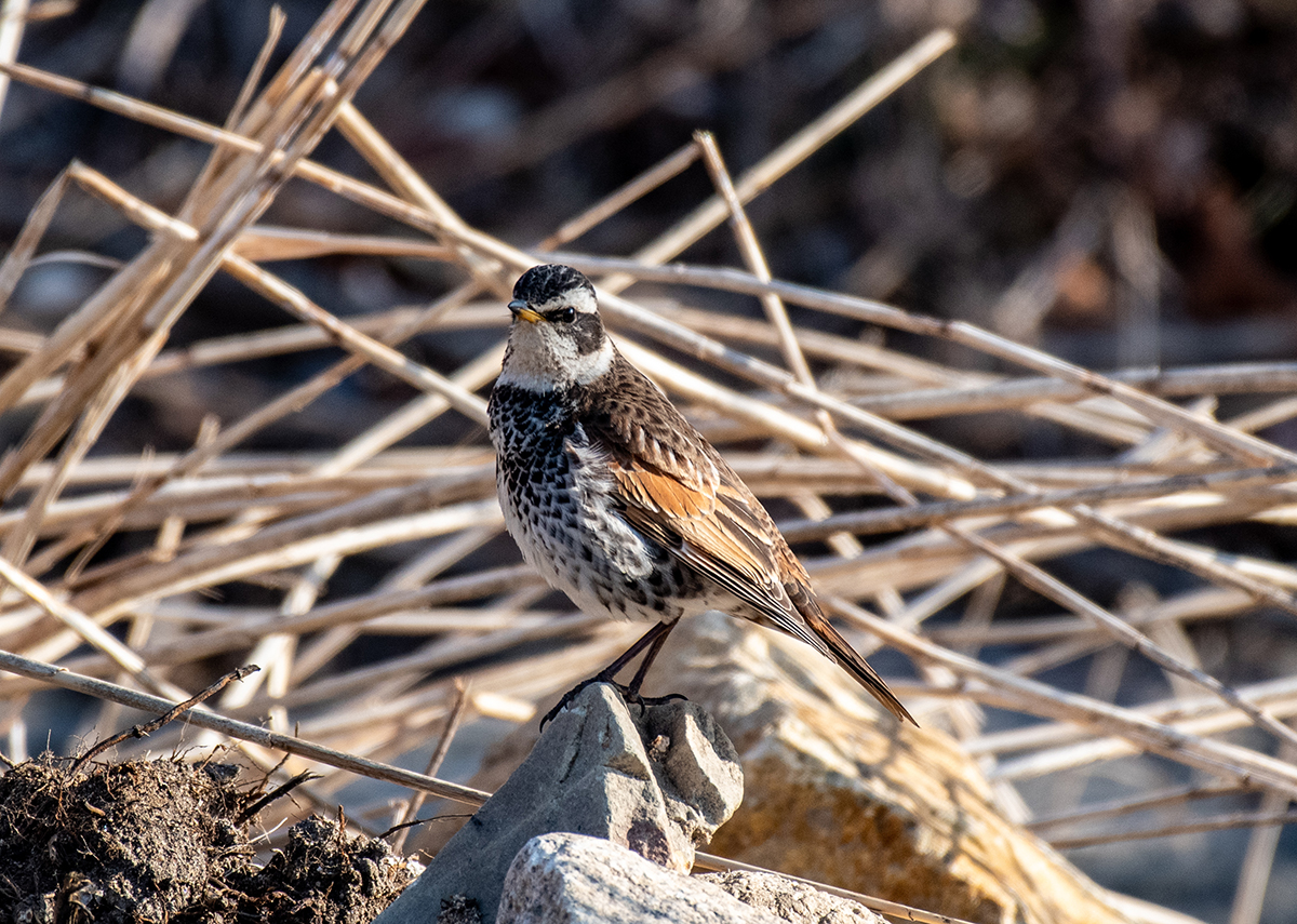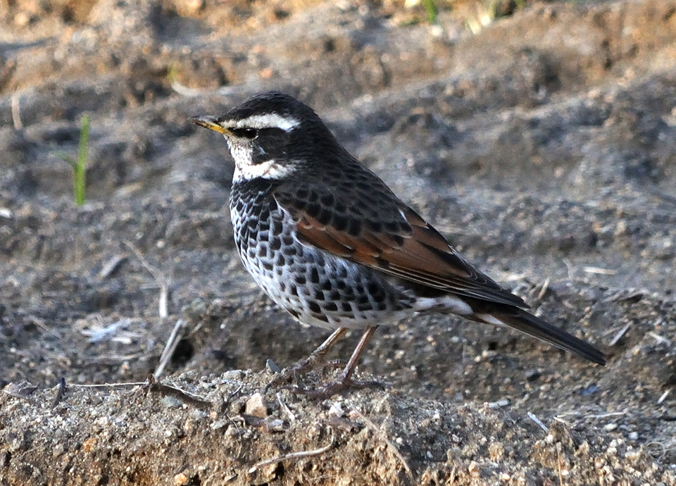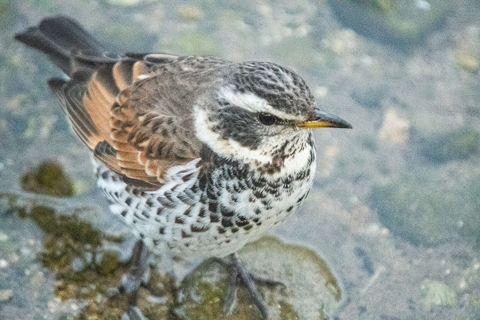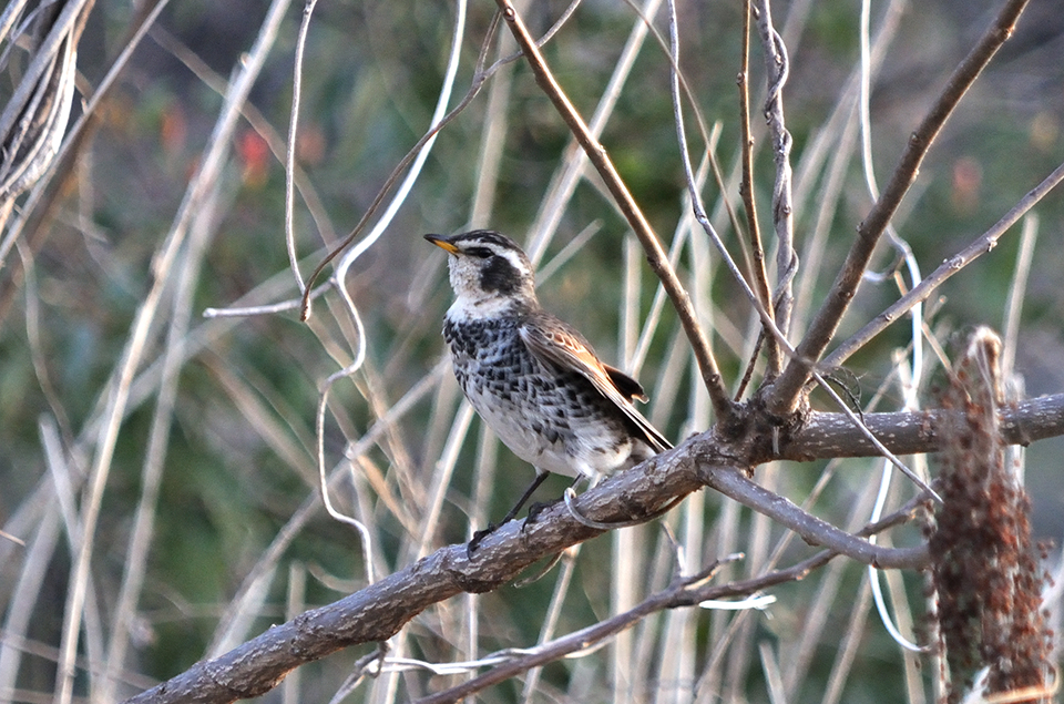 冬になるとシベリアから飛来するツグミはシックで美しい。地面をちょんちょんつついて餌を探す様子が面白いです。結構近づいても逃げません。同じ個体なのかどうか分かりませんがいつも同じ場所で見ることができます。