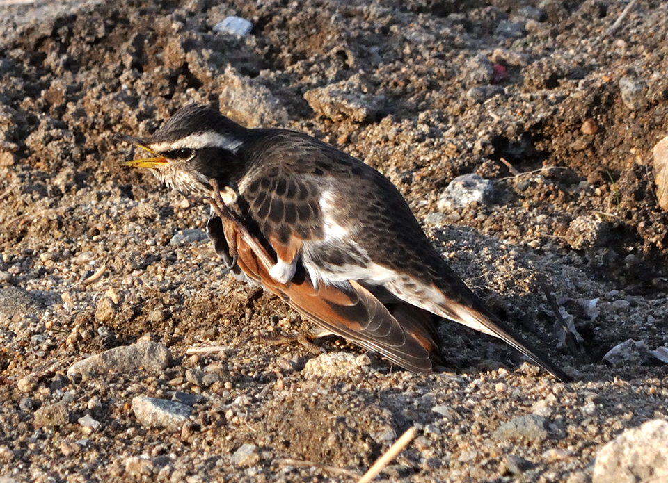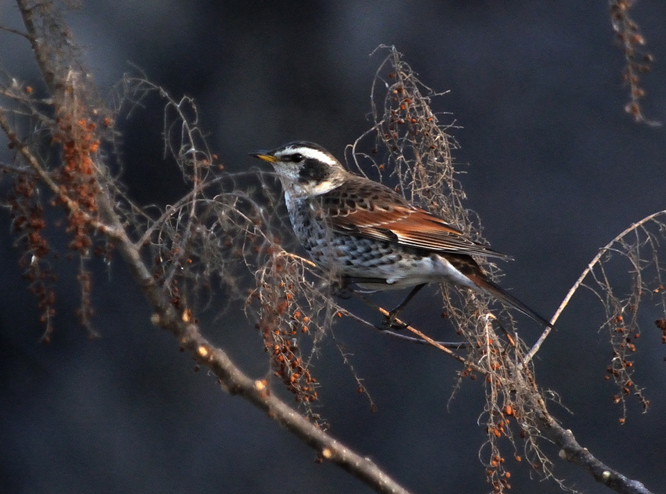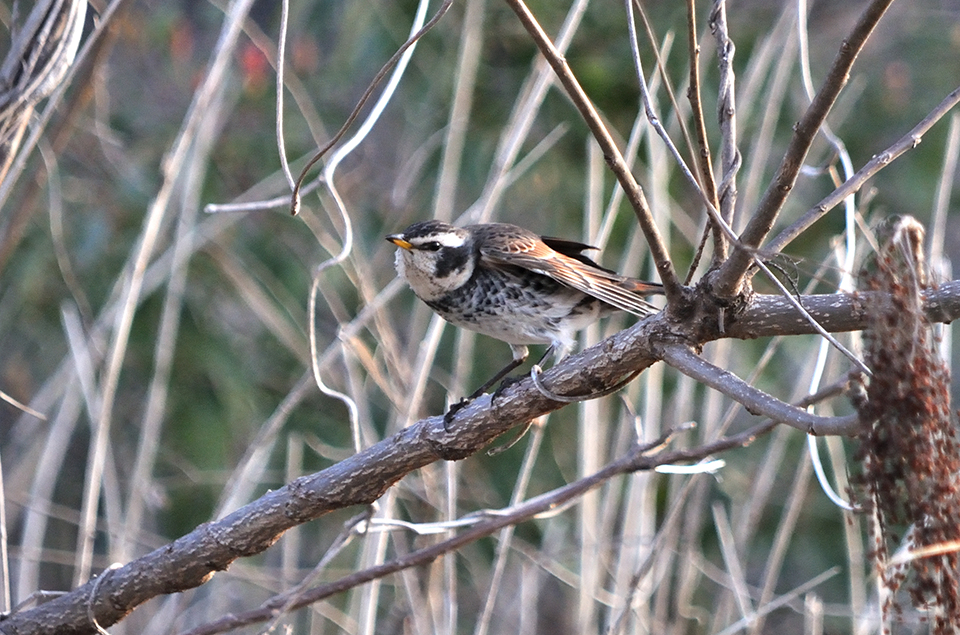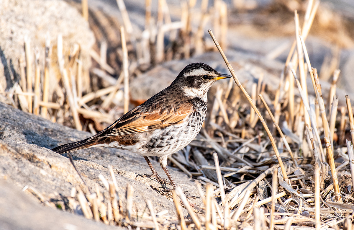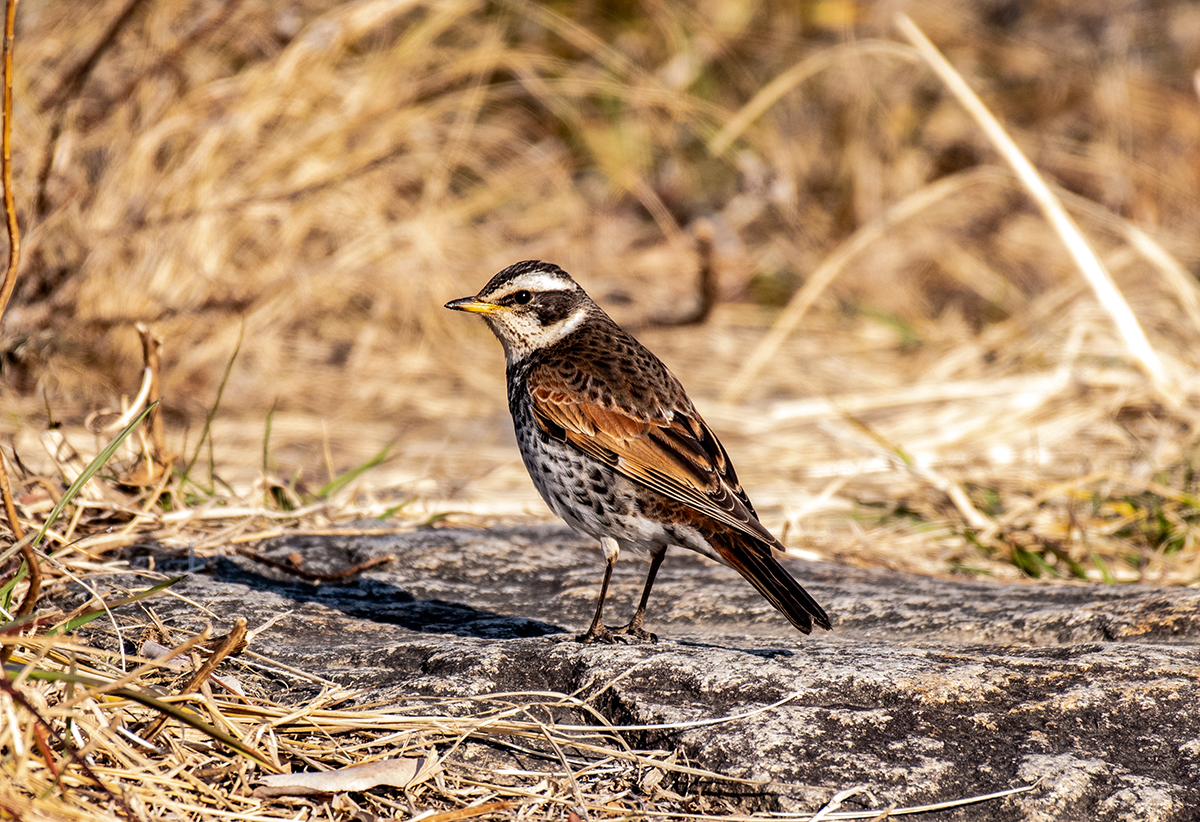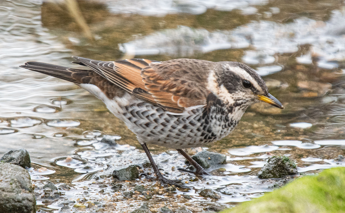 冬になるとシベリアから飛来するツグミはシックで美しい。地面をちょんちょんつついて餌を探す様子が面白いです。結構近づいても逃げません。同じ個体なのかどうか分かりませんがいつも同じ場所で見ることができます。